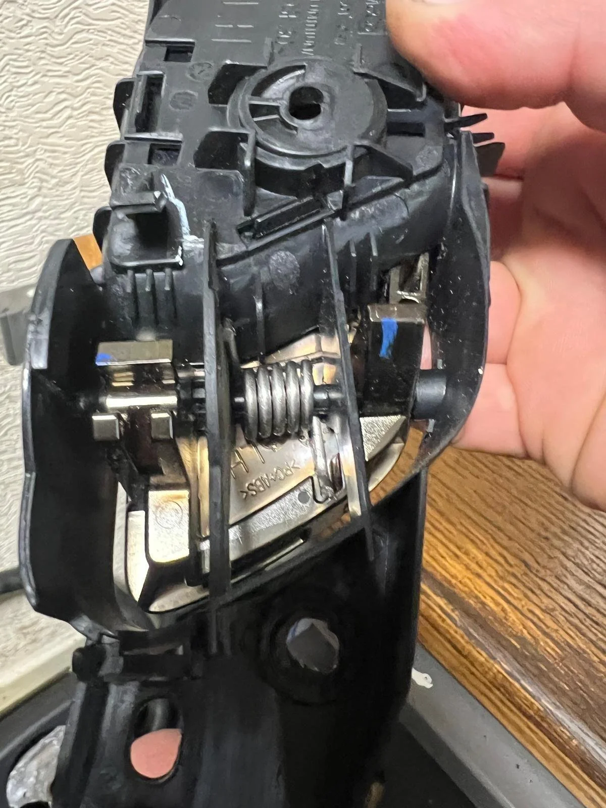 INTERIOR DOOR HANDLE, THESE ARE PLASTIC WELDED ONTO THE DOOR CARD WILL NEED RE WELDING OR TAKE HANDLE OFF AND FIT TO YOUR EXISITNG, GENUINE FORD PART