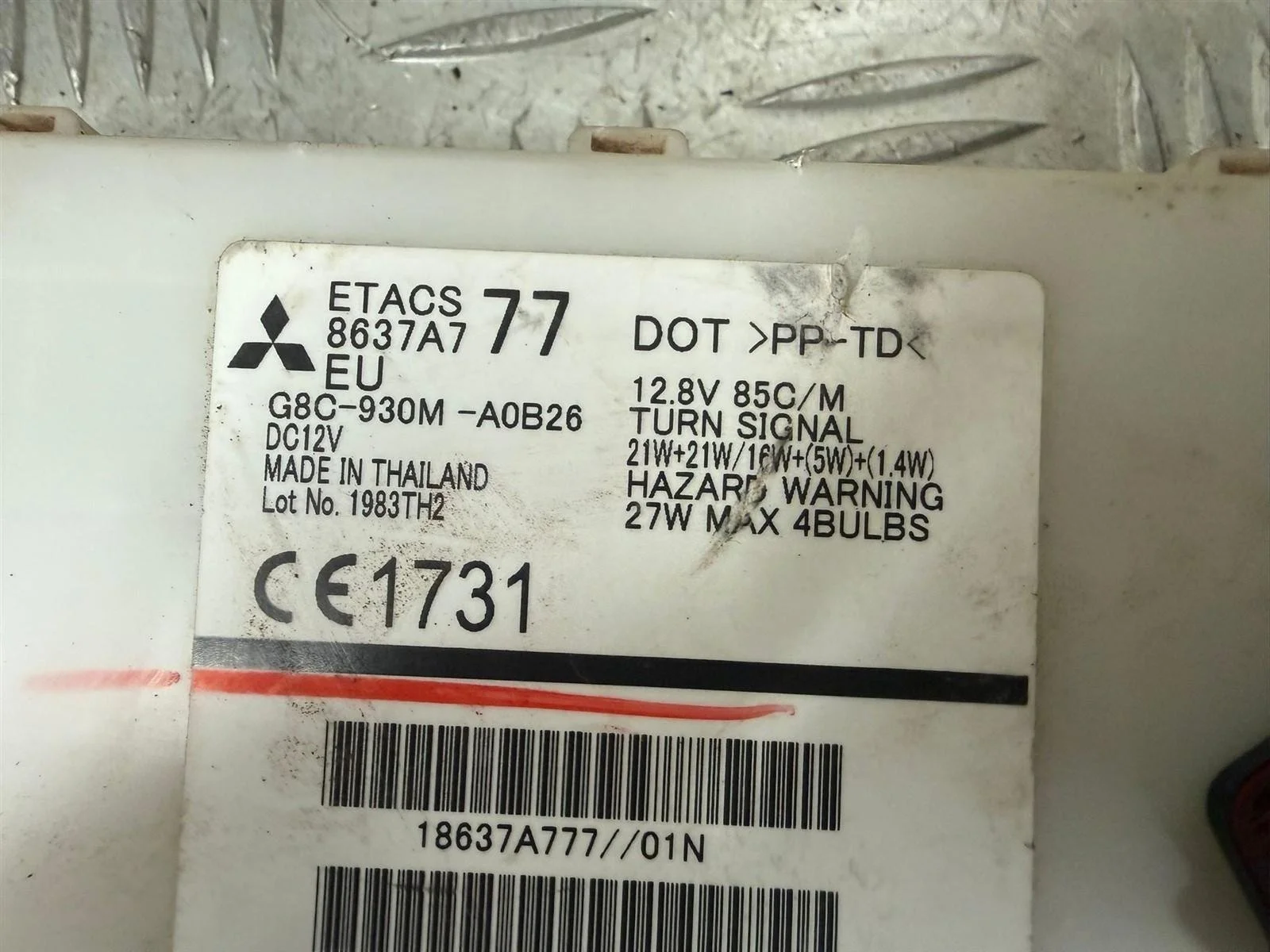 BFD088860 2013 MITSUBISHI L200 2.5 DID ETACS ECU & FOB 8637A777